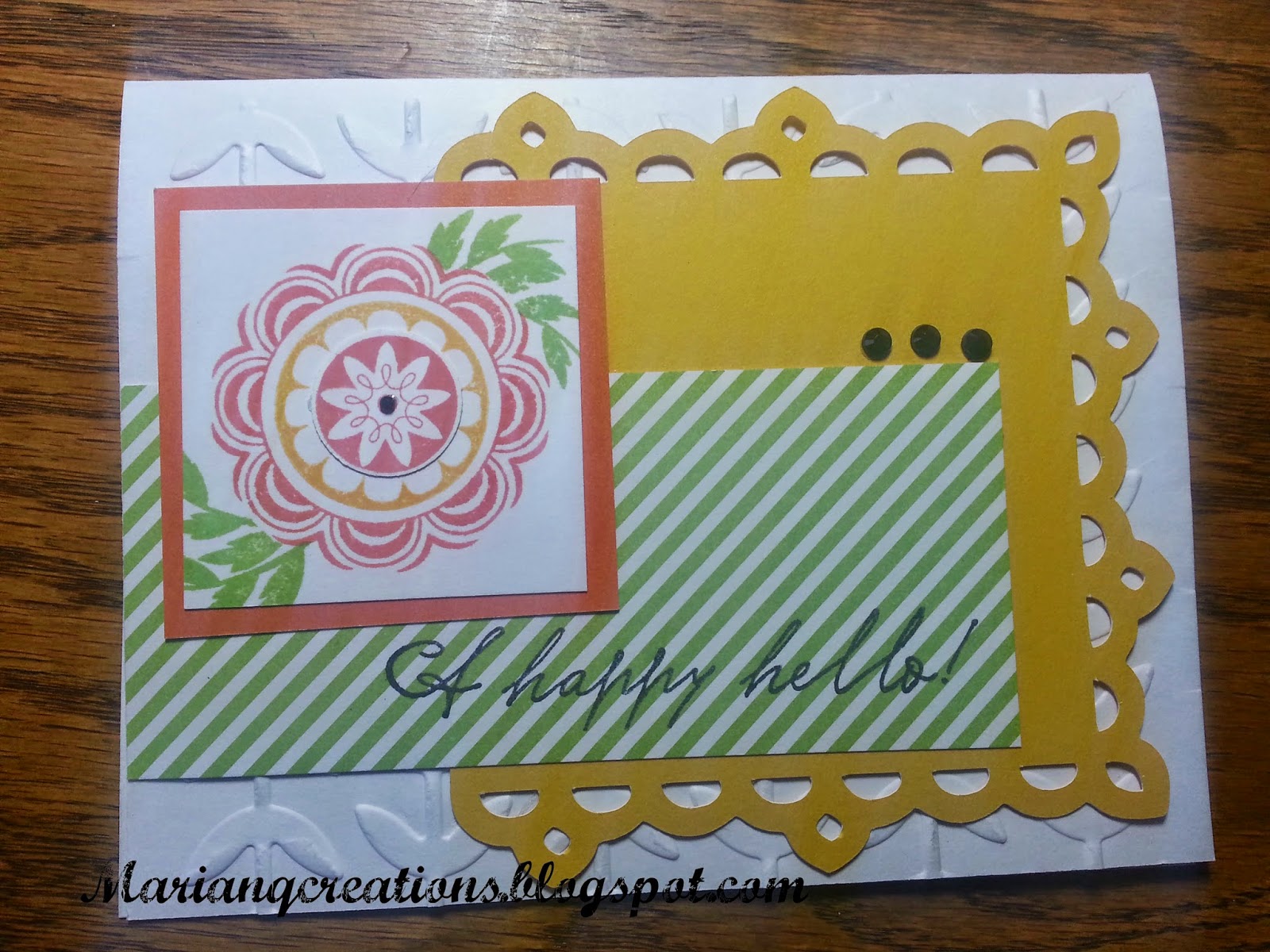 I made this card using our exclusive February Stamp of the month A Happy Hello set. I had fun coming up with something a little different.